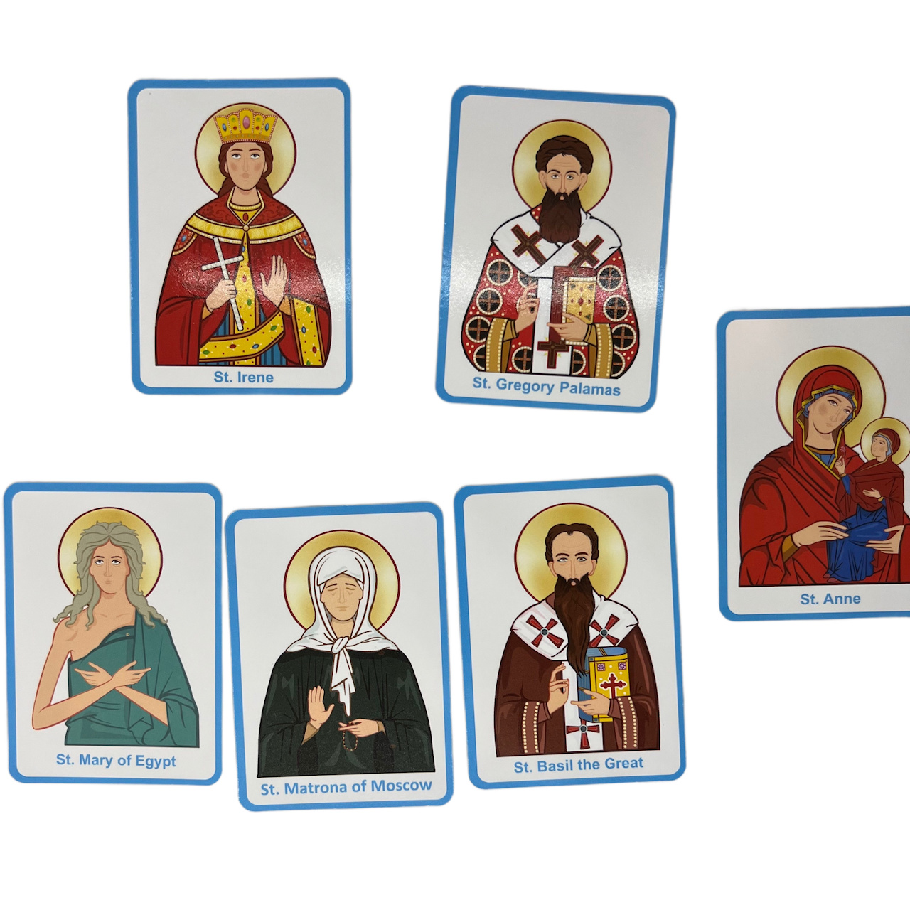 Dive into the rich world of Orthodox Christian saints with our Orthodox Saints Memory Match Game – a captivating and educational card game for the whole family. This high-quality set features 36 full-color saint cards, each measuring 2.25” x 3.4” (57 mm x 87 mm), providing an immersive learning experience for children.